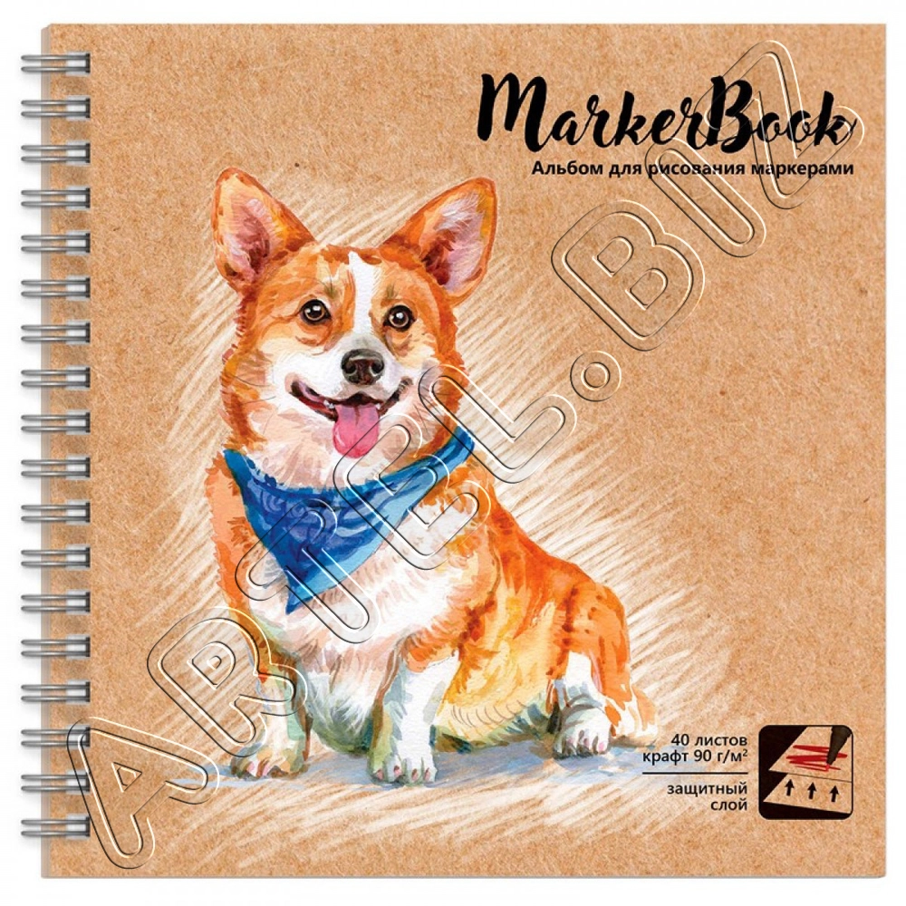Альбом д/рисов.маркерами 195*195 гребень 40л КОРГИ крафт-бум.90г/м2 арт.54044