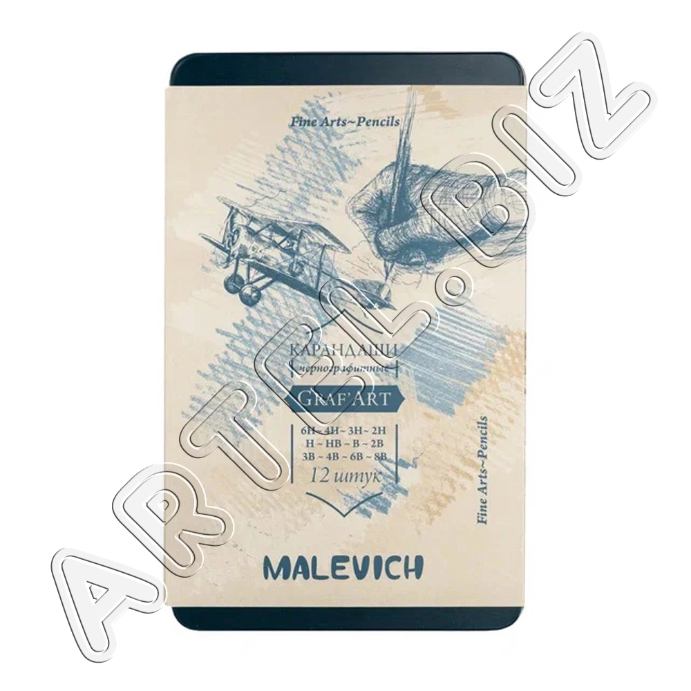 Набор чернографитных карандашей GrafArt, металлическая коробка, 12 шт., Малевичъ