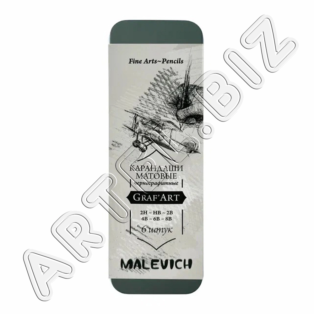 Набор матовых графитных карандашей GrafArt, 6 шт., Малевичъ