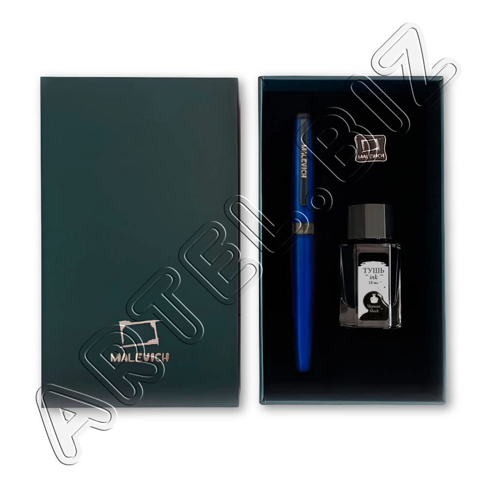 Ручка перьевая с конвертером, перо EF 0,4 мм, набор с черной тушью и значком: ультрамарин