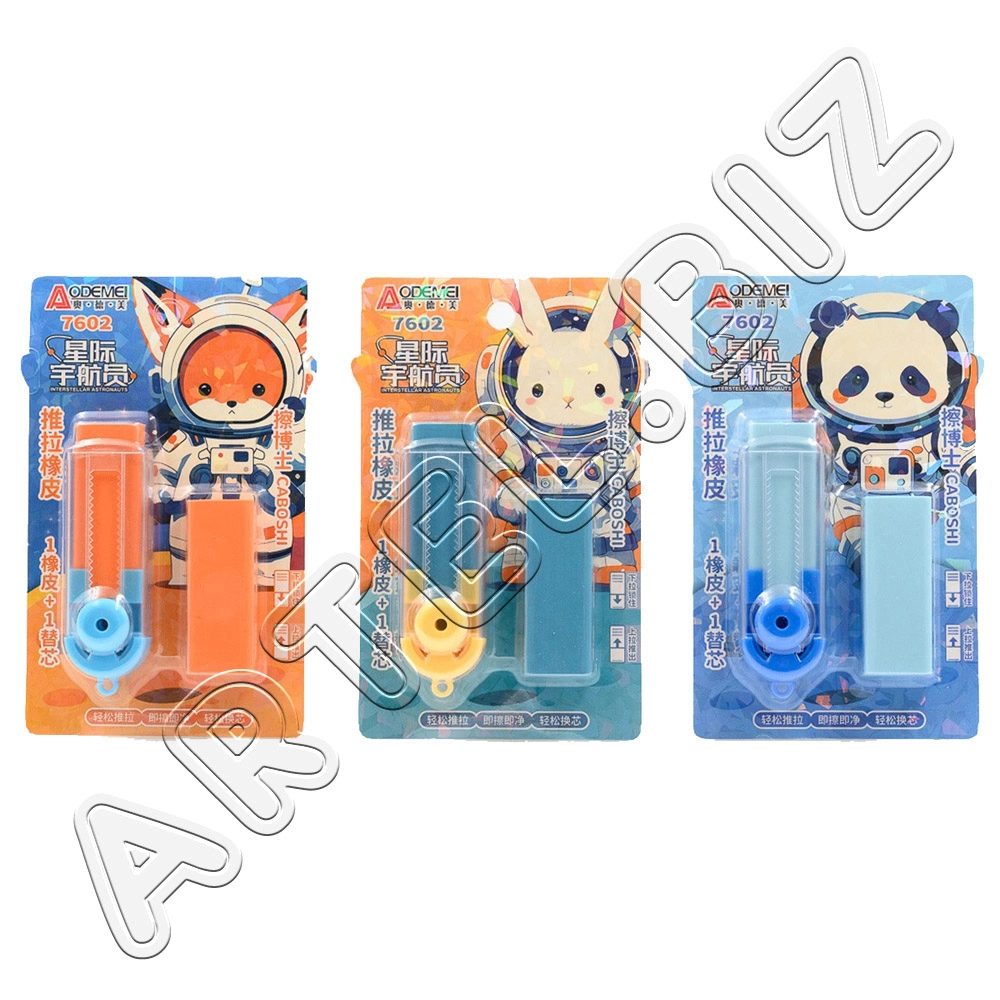 Ластик ЖИВОТНЫЕ-КОСМОНАВТЫ с пластик.держ.+запаска, Синий, арт.7602