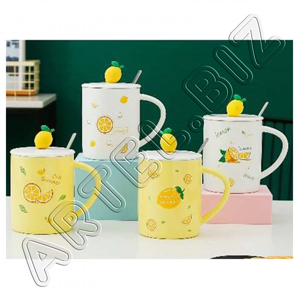 Чашка керамич. ЛИМОН с крышкой, ложкой 380мл арт.HD3137