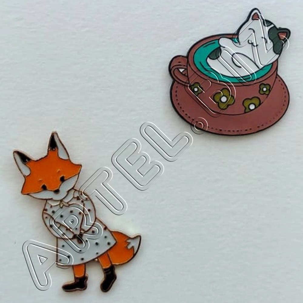Значки металлические, ЛИСА И КОТ, набор 2шт., арт.12566
