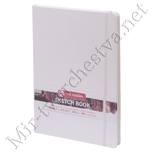 Блокнот для зарисовок 140г/кв.м 21*29.7см 80л твердая обложка белый, Art Creation