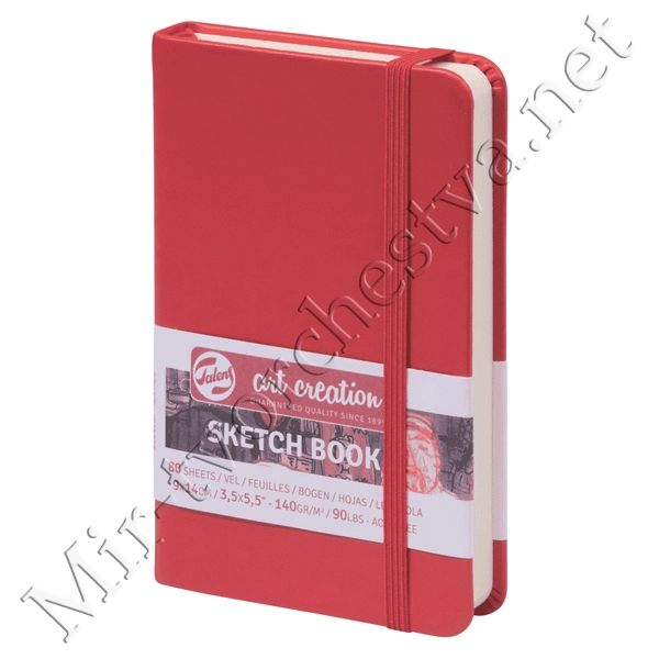 Блокнот для зарисовок 140г/кв.м 9*14см 80л твердая обложка красный, Art Creation