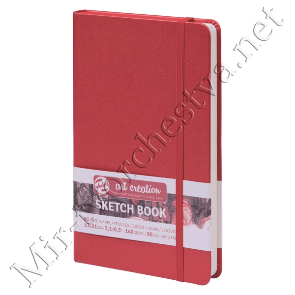 Блокнот для зарисовок 140г/кв.м 13*21см 80л твердая обложка красный, Art Creation