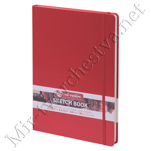 Блокнот для зарисовок 140г/кв.м 21*29.7см 80л твердая обложка красный, Art Creation