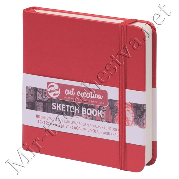 Блокнот для зарисовок 140г/кв.м 12*12см 80л твердая обложка красный, Art Creation