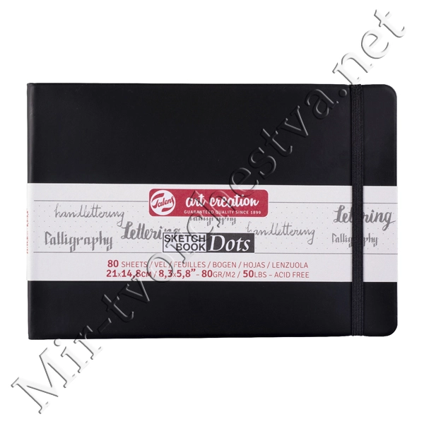Блокнот для зарисовок 80г/кв.м 21*14,8см 80л в точку обложка черная, Art Creation