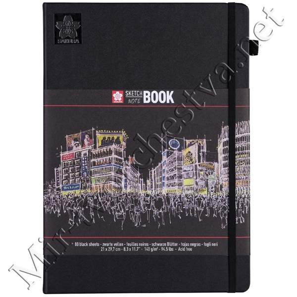 Блокнот для зарисовок 140г/кв.м 21*29.7см 80л черная бумага твердая обложка черный, Sakura