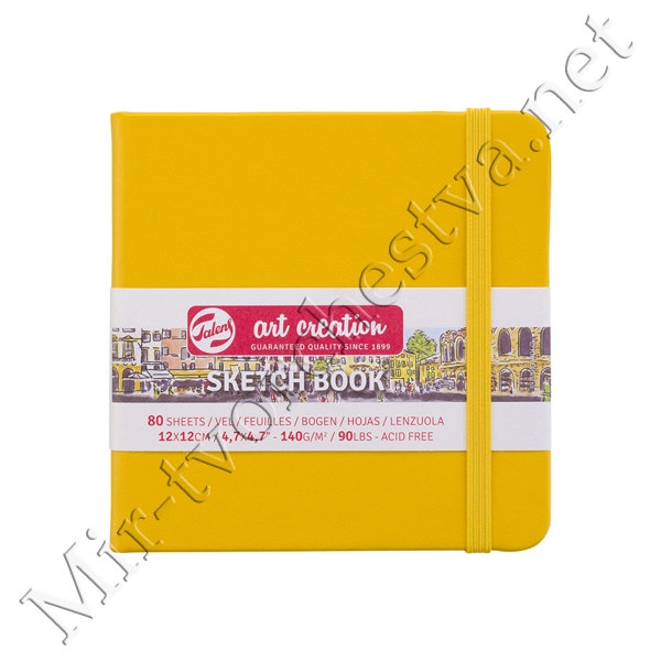 Блокнот для зарисовок 140г/кв.м 12*12см 80л твердая обложка желтая, Art Creation