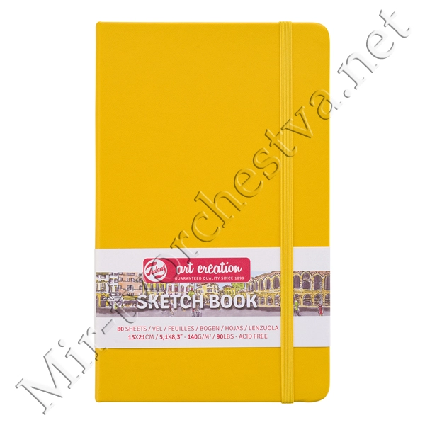 Блокнот для зарисовок 140г/кв.м 13*21см 80л твердая обложка желтая, Art Creation