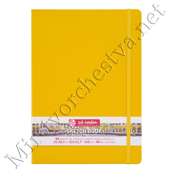 Блокнот для зарисовок 140г/кв.м 21*29.7см 80л твердая обложка желтая, Art Creation