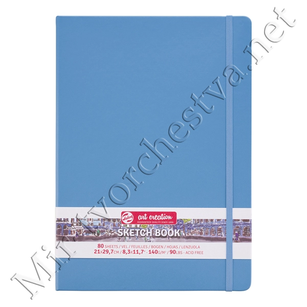 Блокнот для зарисовок 140г/кв.м 21*29.7см 80л твердая обложка синий морской, Art Creation