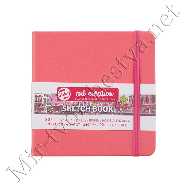 Блокнот для зарисовок 140г/кв.м 12*12см 80л твердая обложка коралловая, Art Creation