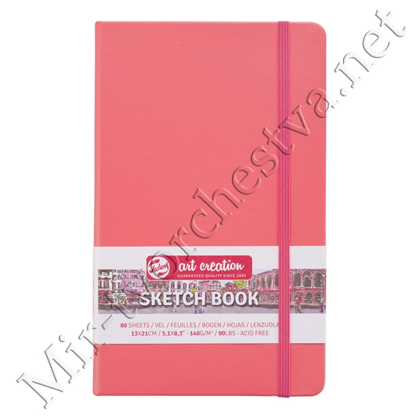 Блокнот для зарисовок 140г/кв.м 13*21см 80л твердая обложка коралловая, Art Creation