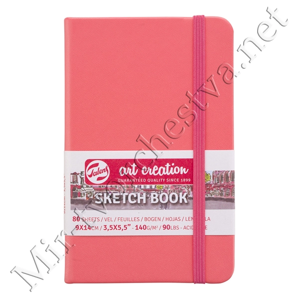 Блокнот для зарисовок 140г/кв.м 9*14см 80л твердая обложка коралловая, Art Creation