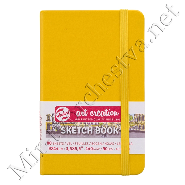 Блокнот для зарисовок 140г/кв.м 9*14см 80л твердая обложка желтая, Art Creation