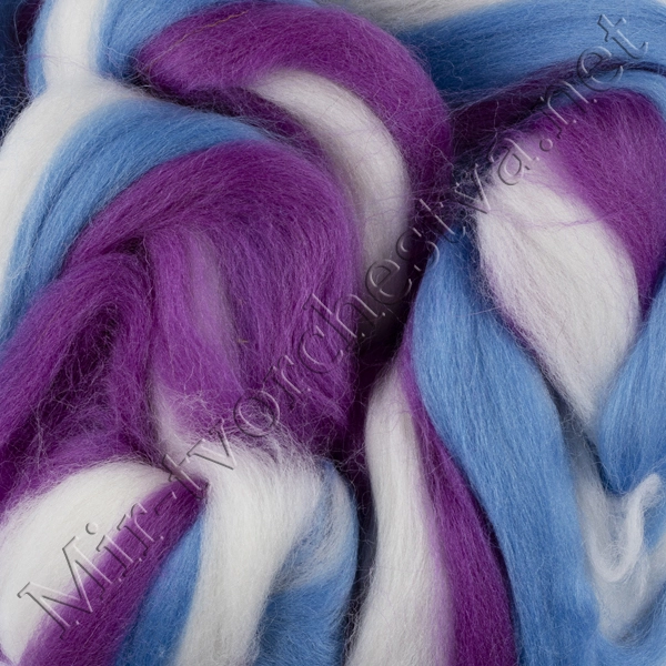 Шерсть для валяния полутонкая (микс), Белый/Голубой/Сиреневый (6101), 50г, Gamma