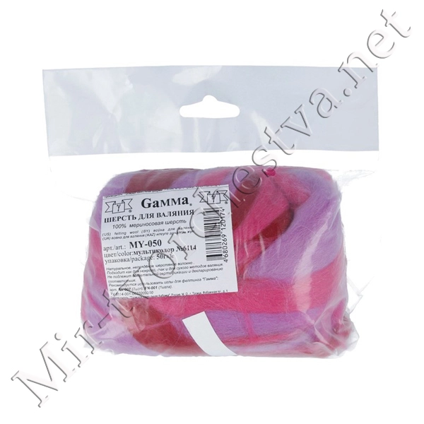 Шерсть для валяния полутонкая, Мальва (1014), 50г, Gamma
