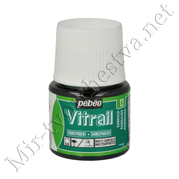 Краска для стекла и металла Vitrail лаковая прозрачная 45 мл 050-013 изумрудный, Pebeo