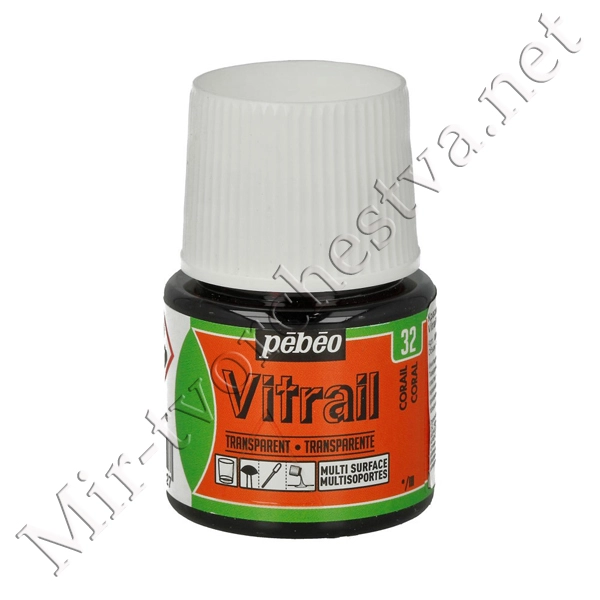 Краска для стекла и металла Vitrail лаковая прозрачная 45 мл 050-032 лососевый, Pebeo
