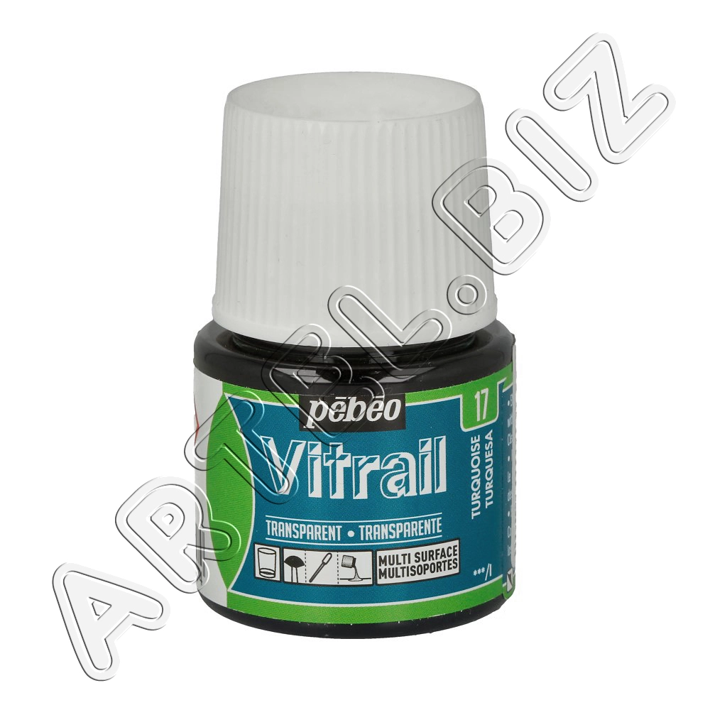 Краска для стекла и металла Vitrail лаковая прозрачная 45 мл 050-017 бирюзовый, Pebeo