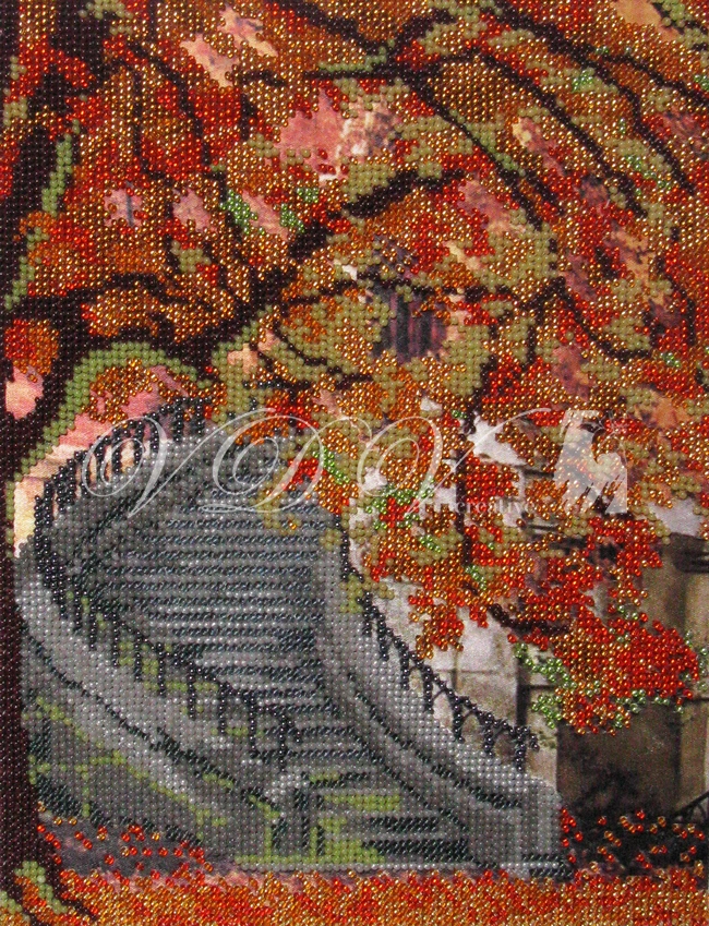 Вышивка бисером (Т-0283), Пейзаж с букетом, 23х27см