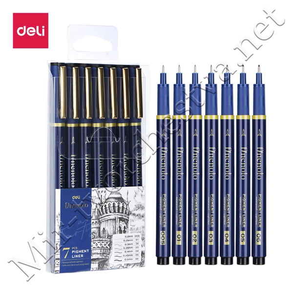 Набор капиллярных ручек черные размеры ассорти 7шт в пластиковой упаковке, Finenolo