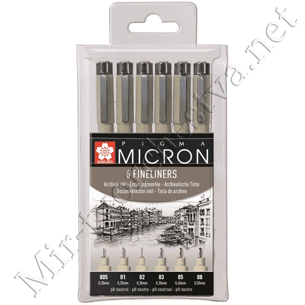 Набор капиллярных ручек Pigma Micron 6 шт., Sakura