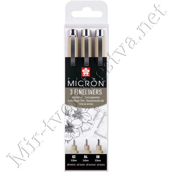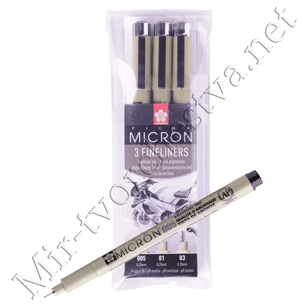 Набор капиллярных ручек Pigma Micron 3 штуки (0.2мм 0.25мм 0.35мм) черный в блистере, Sakura