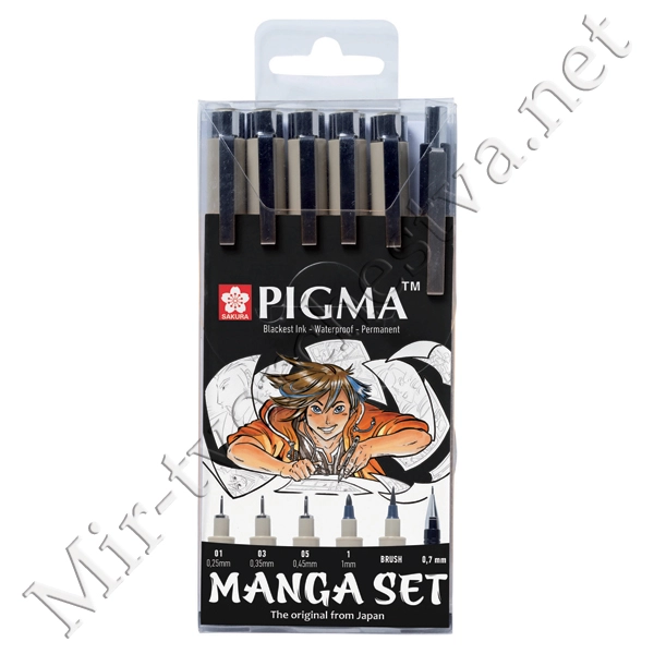 Набор капиллярных ручек Pigma Manga 6 предметов (ручки Pigma + мех. карандаш) в блистере, Sakura