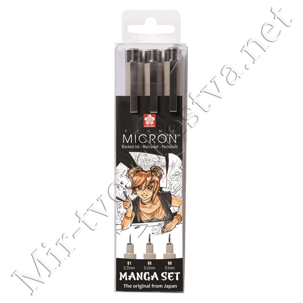 Набор капиллярных ручек Pigma Micron Manga 3 штуки (0.1мм 0.5мм 0.8мм) Черный в блистере, Sakura