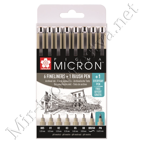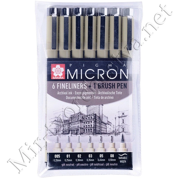 Набор капиллярных ручек Pigma Micron 7шт (0.2мм 025мм 0.3мм 0.35мм 0.45мм 0.5мм+ brush), Sakura