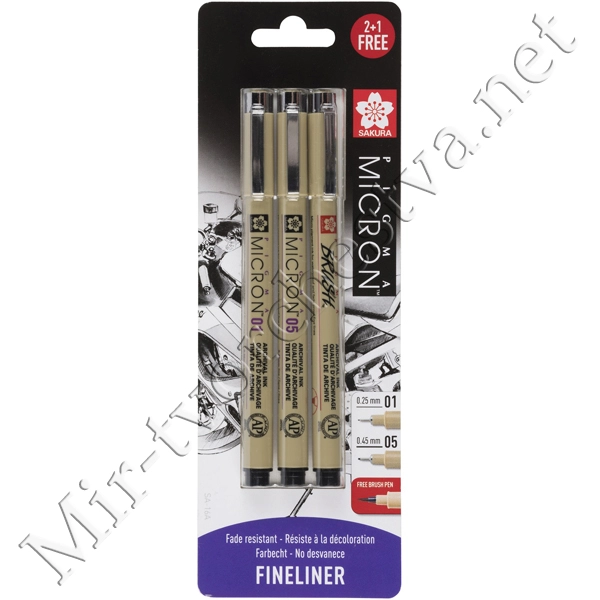 Набор капиллярных ручек Pigma Micron 3шт (0.25мм 0.45мм + Ручка Pigma Brush), Sakura