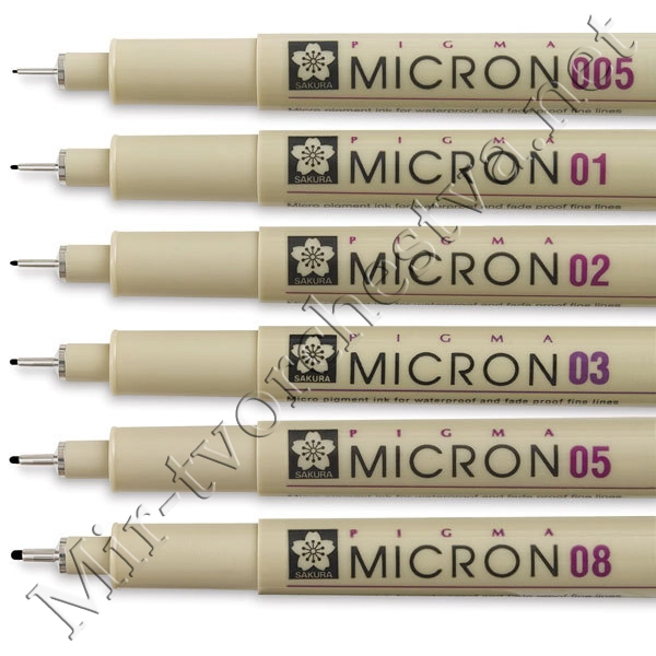 Набор капиллярных ручек Pigma Micron 8шт (0.2мм 025мм 0.3мм 0.35мм 0.45мм 0.5мм + brush), Sakura