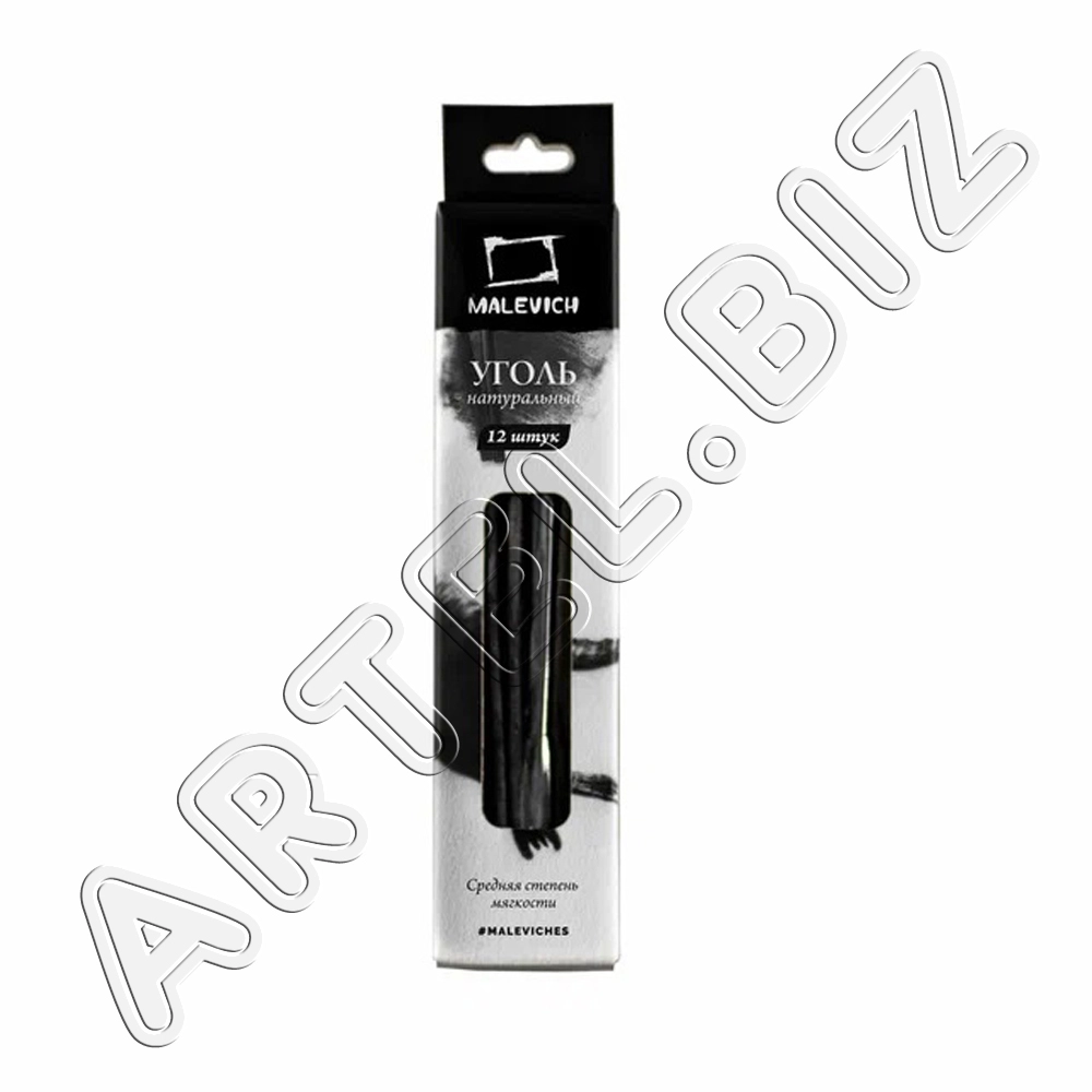 Уголь натуральный для рисования, диаметр 4мм, длинна 150мм, 12 шт., Малевичъ