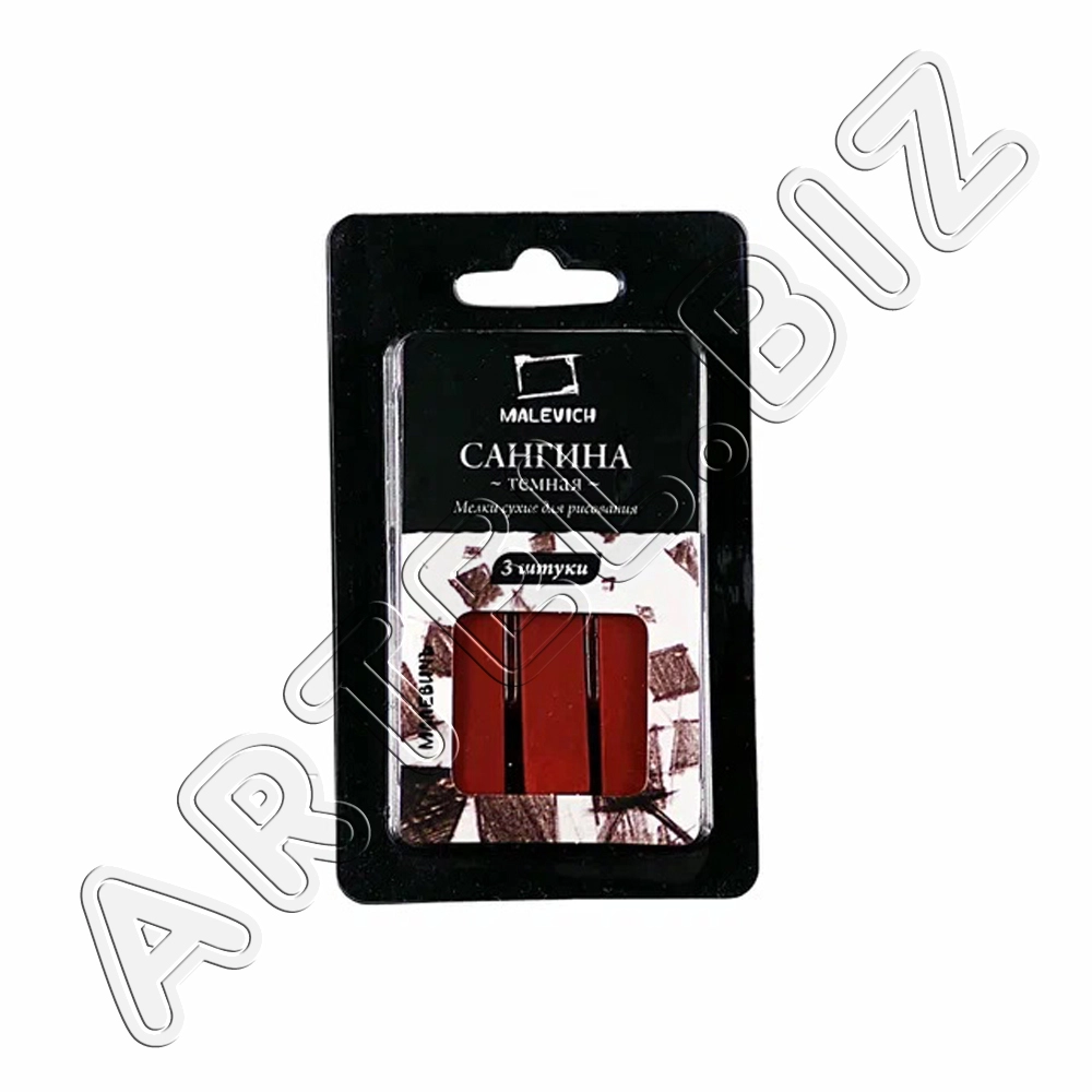 Сангина темная, набор квадратных мелков, 3 шт., Малевичъ