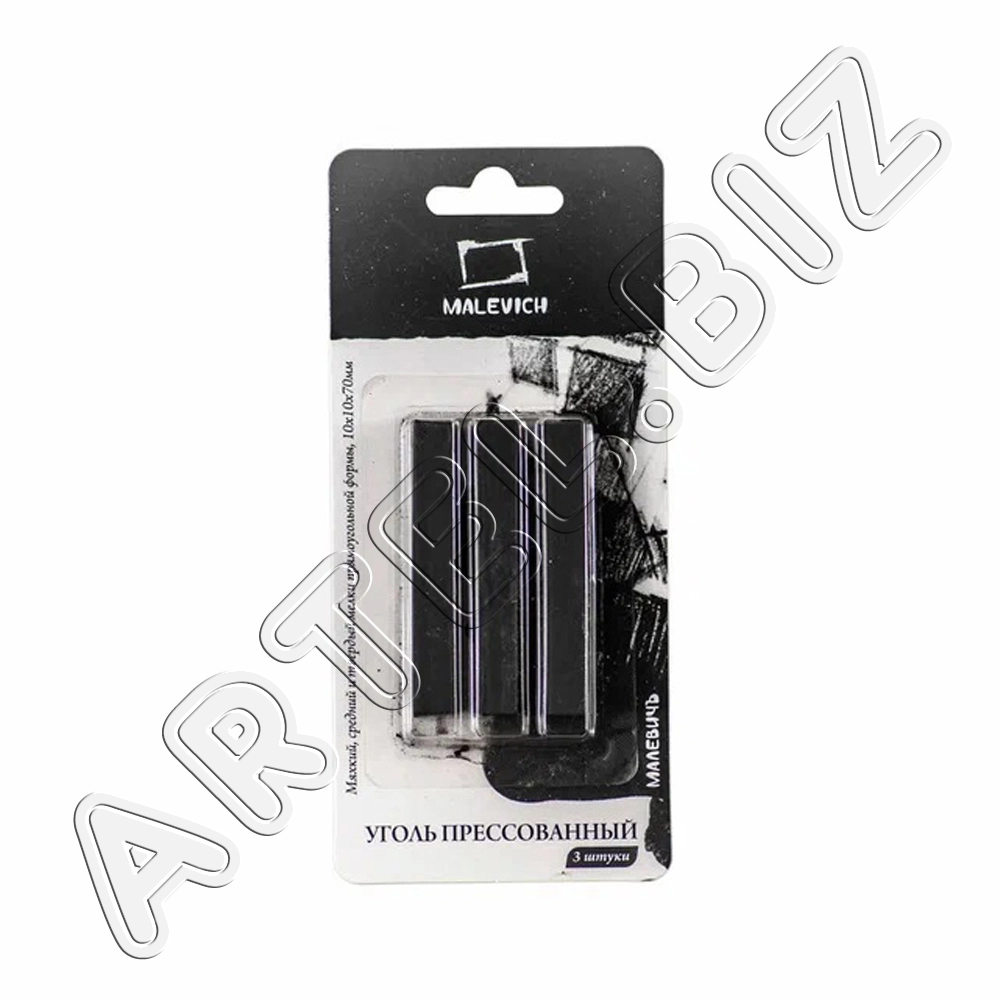 Уголь прессованный, набор квадратных мелков, 3 шт., Малевичъ