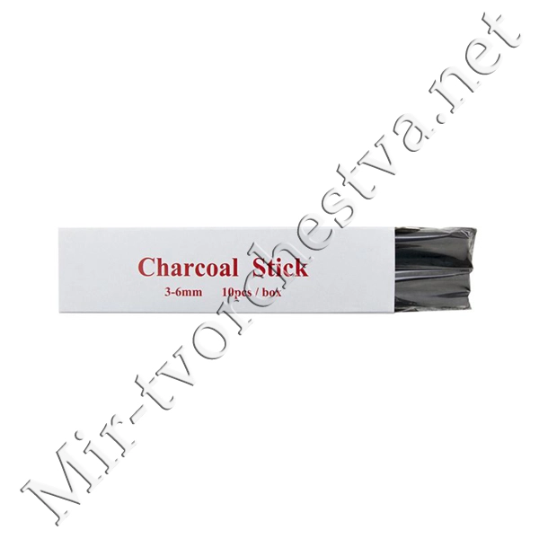 Уголь натуральный для рисования, ивовый, диаметр 5-6 мм, длина 12 см, 6 шт., Малевичъ
