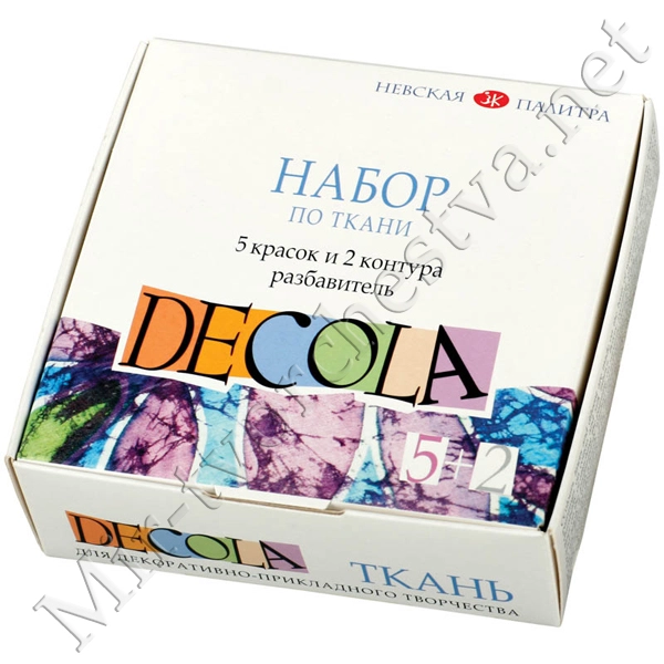 Набор акриловых красок по тканям: краски акриловые 5x20мл, контуры в тубах 2x18мл, разбавитель, Decola