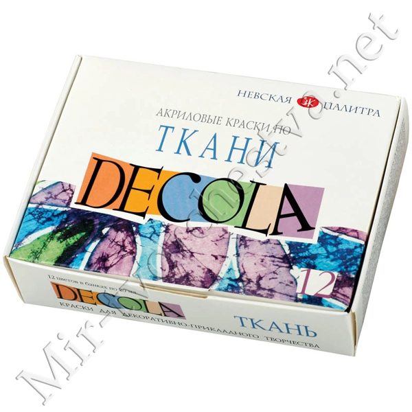 Набор акриловых красок по тканям, 12х20мл, Decola