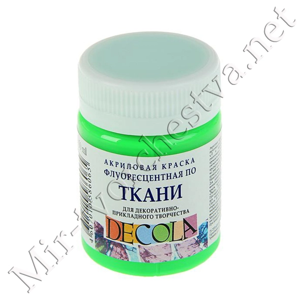 Краска акриловая по ткани, Зеленая, флуоресцентный, 50мл, Decola