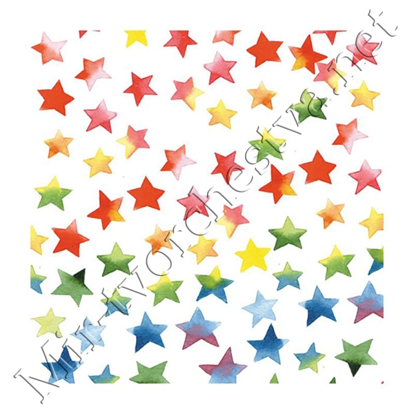Декупажная салфетка "Акварельные цветные звезды", 33*33 см, 18,5 г/м2, Abiente