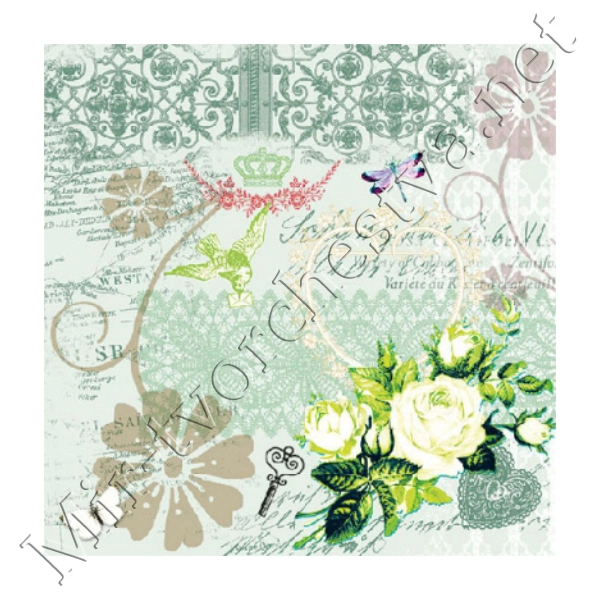 Декупажная салфетка "Винтажные цветы", зеленые, 33*33 см, 18,5 г/м2, Abiente