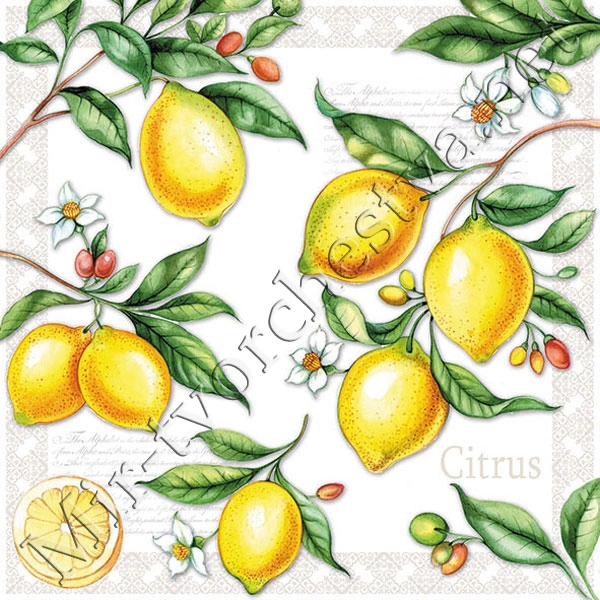 Декупажная салфетка "Лимон", 33*33 см, 18,5 г/м2, Abiente