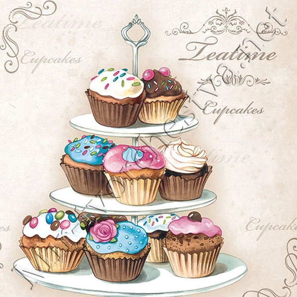 Декупажная салфетка "Cupcakes on Etagere", 33*33 см, 18,5 г/м2, Ambiente
