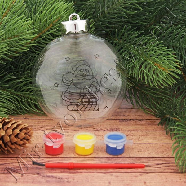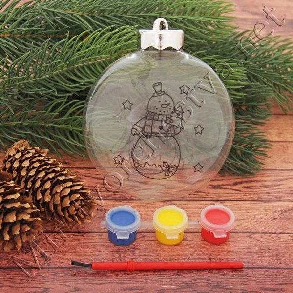 Новогоднее ёлочное украшение под роспись «Шар со снеговиком», 3x10x11см + краски