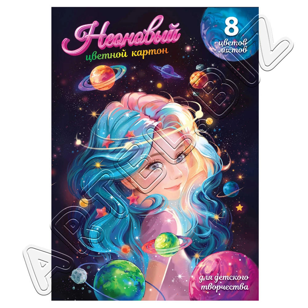 Набор цветного картона, односторонний, немелованный, 220г/м2, А4, 8 цветов, 16 листов, Цветик