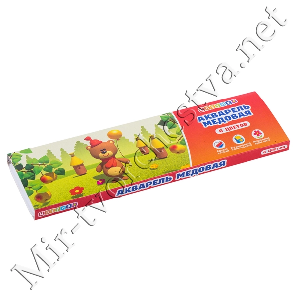 Набор акварели Медовой, картонная упаковка, 6 цветов, Цветик